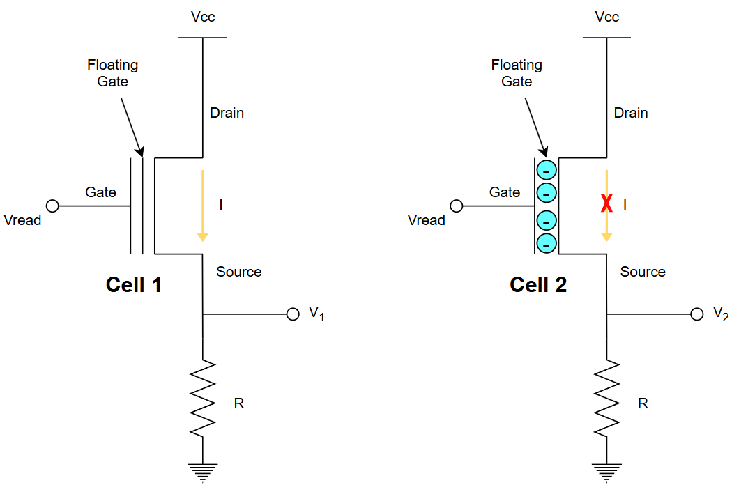 浮栅中电子的有无,会通过 “内建偏压” 改变 Vth,具体逻辑可通过公式与实例说明: