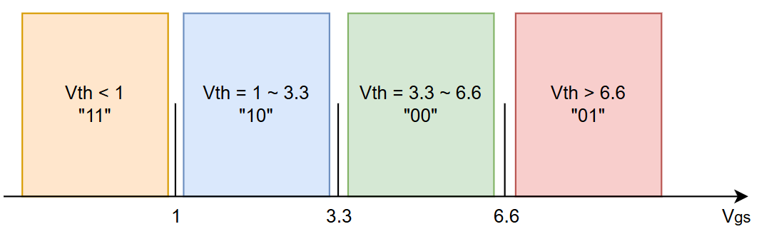 - 其中,Vth被定义为 “导通电压”。该电压值越高,意味着 Cell 需要更大的Vgs才能启动导通,整体导通难度也随之增加。